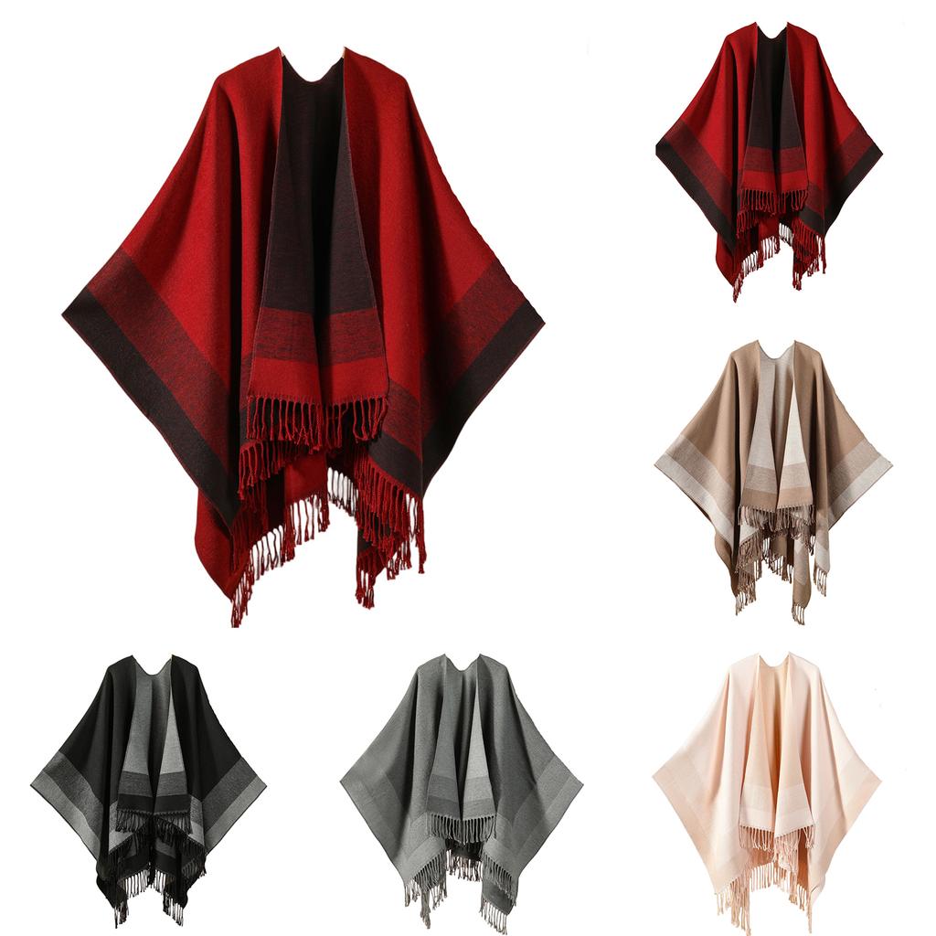 Ladies' Fashionable Single-color Fringed Slit Shawl, Double-sided Three-dimensional Wavy Warm Imitation Cashmere Scarf, Cloak Cardigan