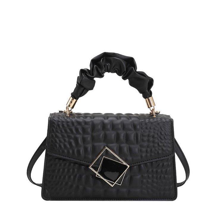 Trendy Crocodile Pattern Handbag, Top Ruched Handle Square Wallet for Women, Solid Color Textured Bag