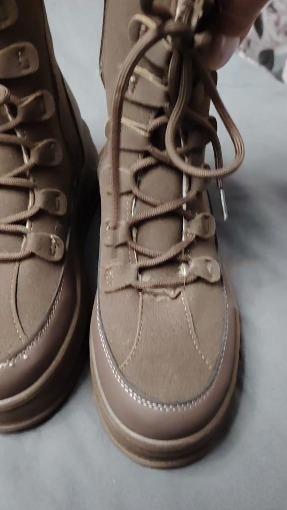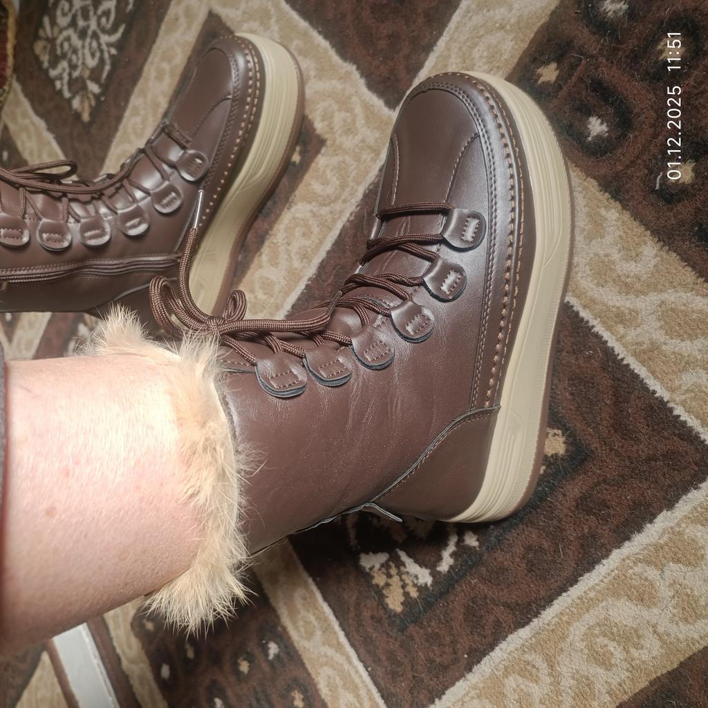 Støvlettene er laget pent, og de er komfortable på foten. Det er fluffy pels bare langs kanten øverst, inni er det et fôr med kort lugg.
