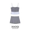Fashion Style 2024 Summer New Arrival Women's Clothing Plaid Stitching Blue Sling Dress Short Skirt 3152329401