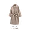 Kaslead New Women clothes Western Style Fashion Simple Two-Color Fur Integrated Trench coat Lace-up Outerwear