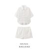 Kaslead New Women clothes Western Style Simple Short sleeve Lapel Shirts Trousers 8017741 8330741