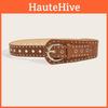 Womens Adjustable Faux Leather Waist Belt With Rivet Decor Western Style For Winter Wear