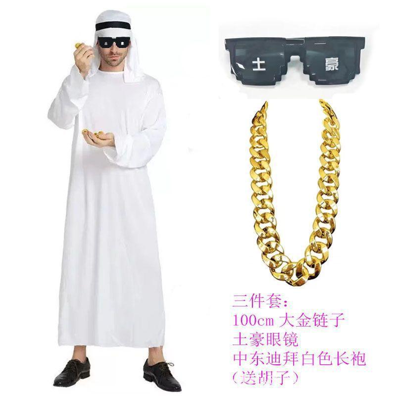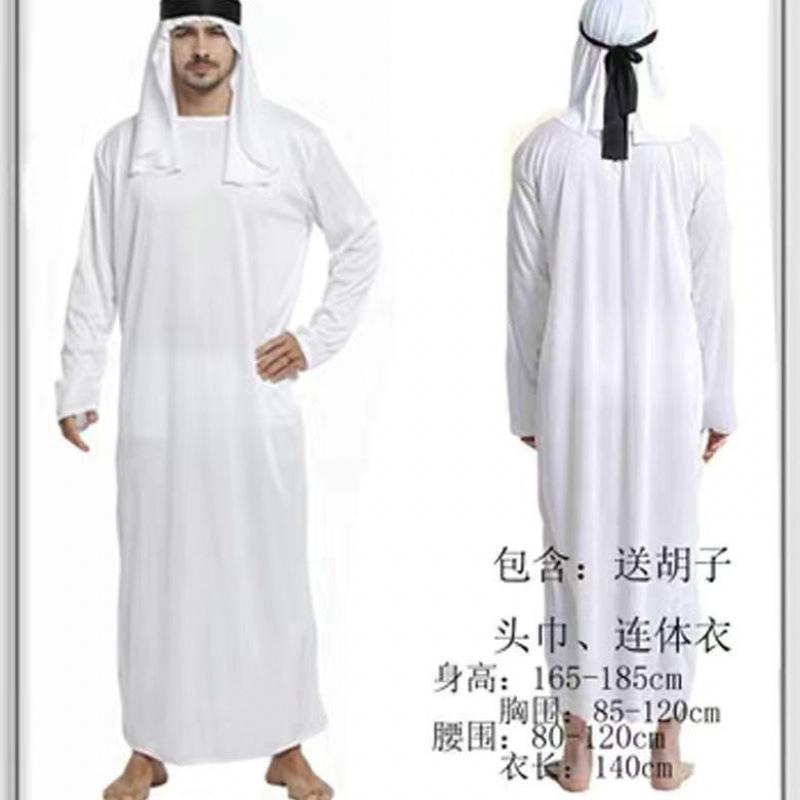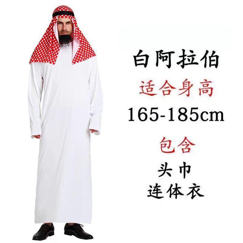 Party Costume Middle East Dubai Prince Adult Men's White Arabian Red Headscarf Performance Stage Costume