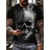 Fashionable Men's Short Sleeved 3D Digital Printed Skull Pattern T-shirt Trendy Versatile Top
