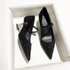 Korean version of one-word buckle polka dot diamond temperament high heels women's burgundy senior sense pointed Mary Jane slope heel single shoes wom