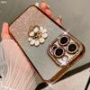 For iPhone 16 Pro Max Luxury Plating Flash Mirror Holder Stand Diamond Frame For iPhone 11 12 13 14 15 Plus Lens Protective Cover