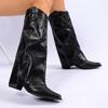 Fashion Rivet Decor Slouchy Knee High Boots for Women Fashion Black Chunky Heel Long Boots Woman Autumn PU Leather Riding Botas De Mujer