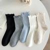 Lady Spring Solid Color Lace Pleated Bubble Mouth Tube Pile Pile Socks