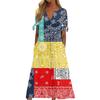 Bayan Günlük Moda Mizaç Zarif Bel Patchwork Çiçek Baskılı Uzun Elbise
